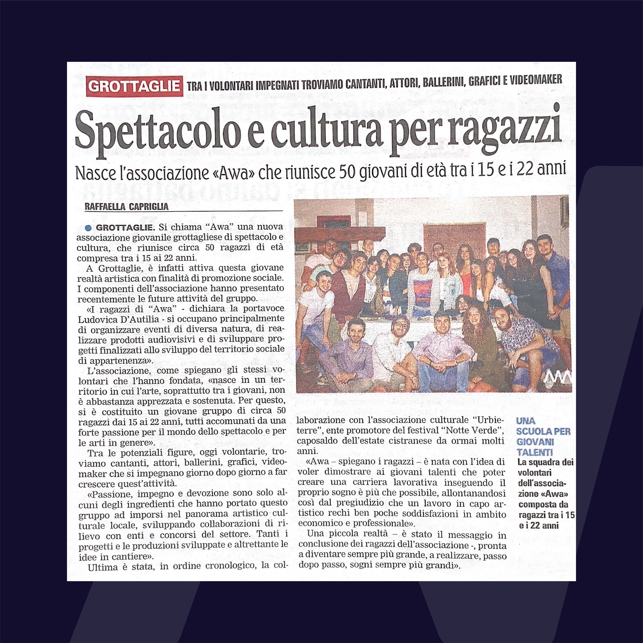 "Spettacolo e cultura per ragazzi" - l'articolo de La Gazzetta del Mezzogiorno su AWA AWA Productions • 18 Settembre 2020 Si chiama "AWA" una nuova associazione [...]